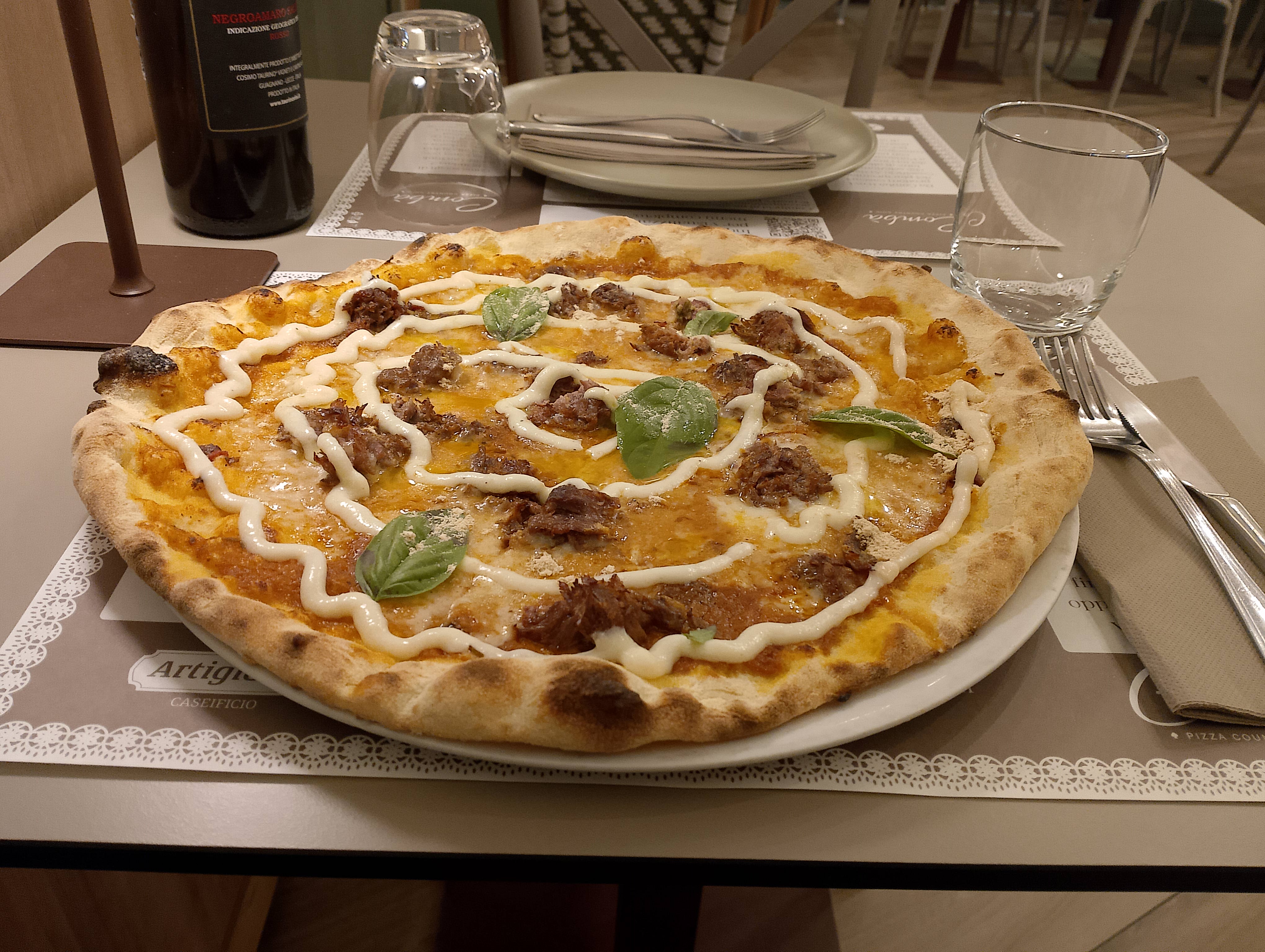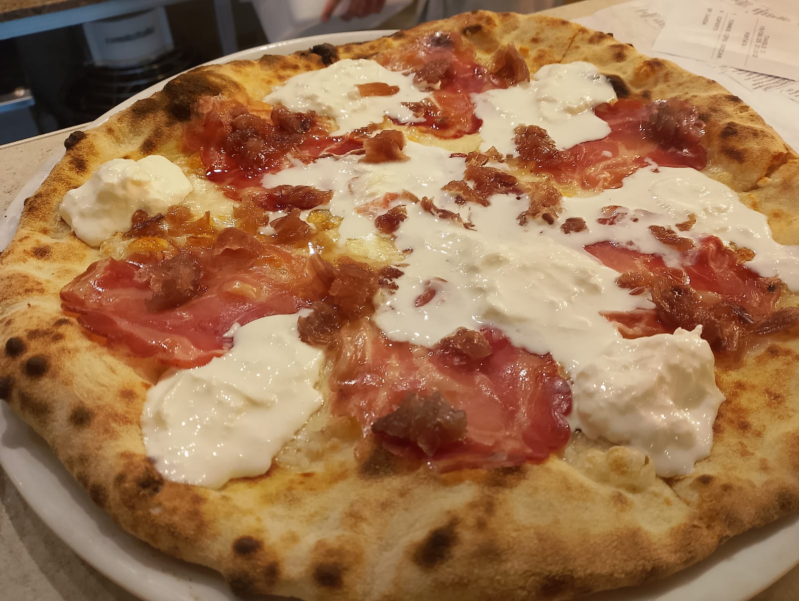 Italian red tomato sauce with local fiordilatte mozzarella, served with Apulian capocollo, caramelized red onion, and chopped hazelnuts.